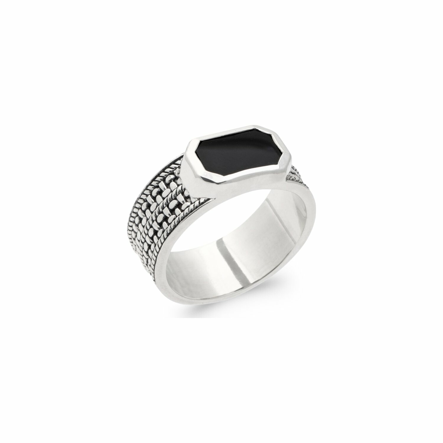 Bague en argent et agate noire