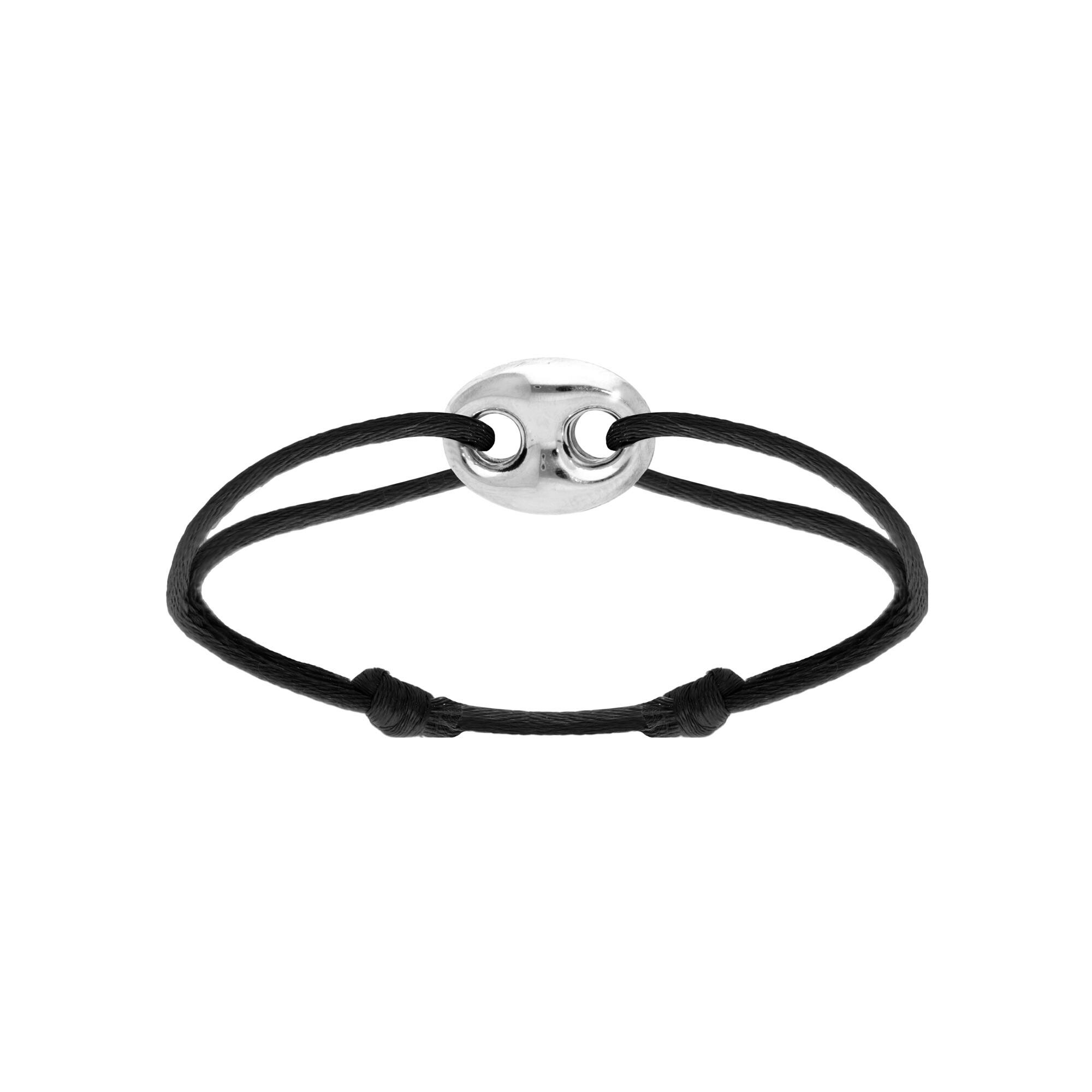 Bracelet argent rhodié motif grain de café 12 x 16mm cordon coulissant noir