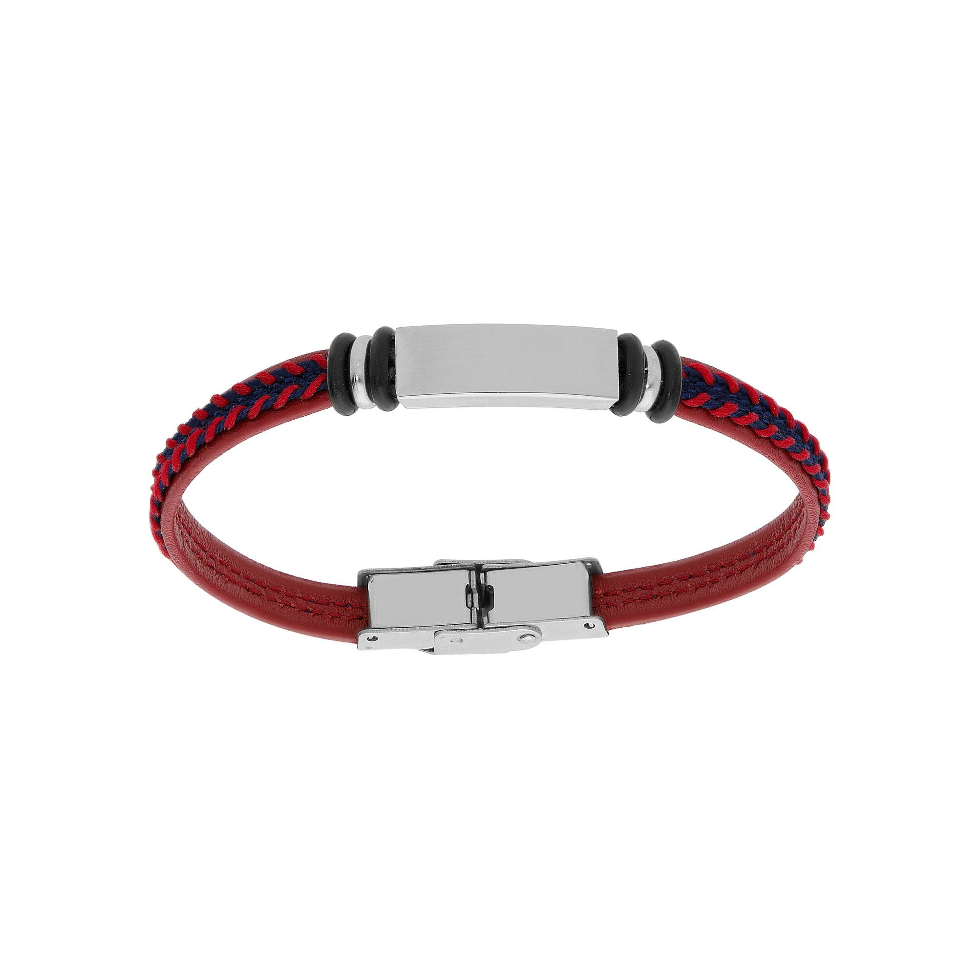 Bracelet junior acier et cuir bovin rouge 16cm réglable à graver
