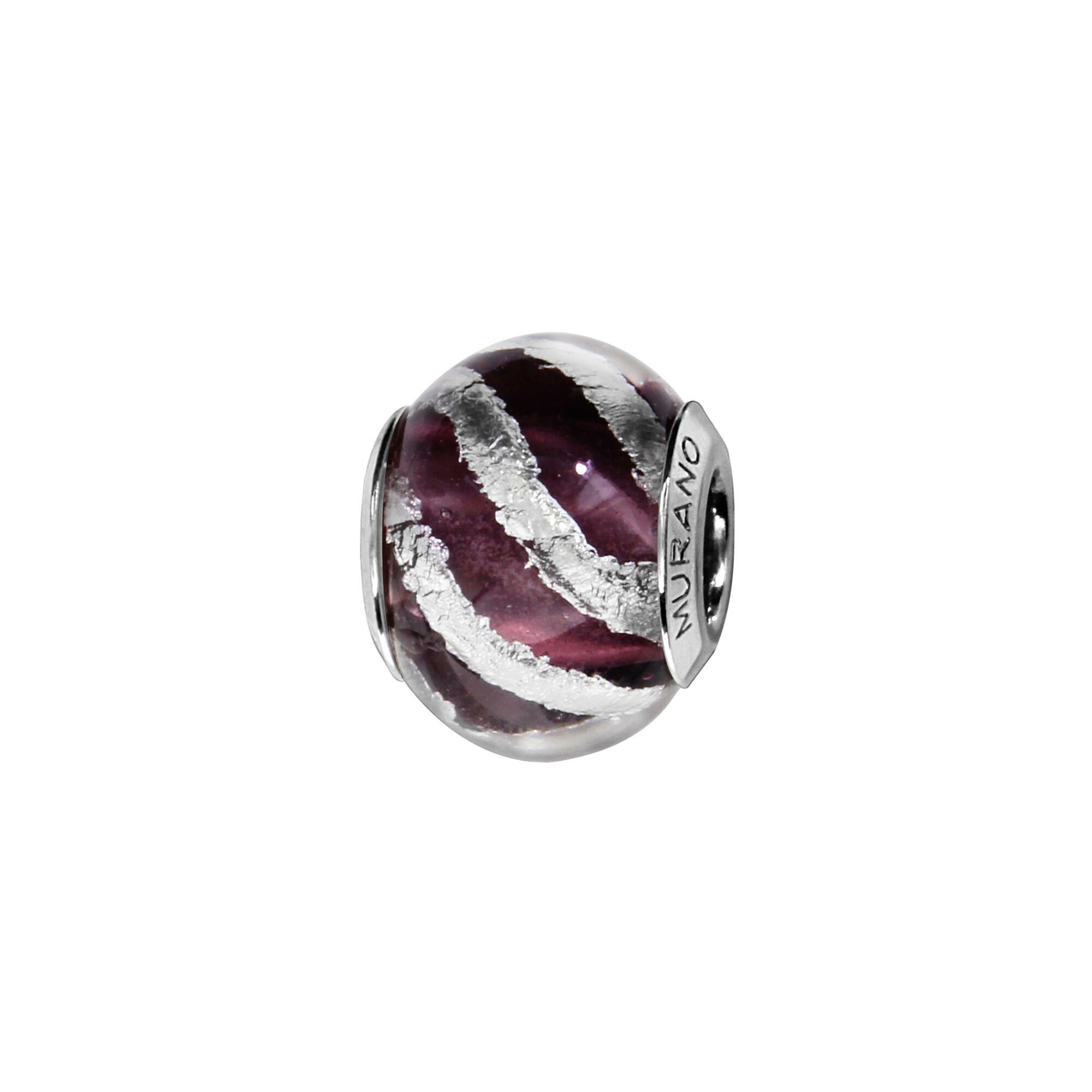 Charms coulissant argent rhodié murano véritable violet avec bande en biais argenté