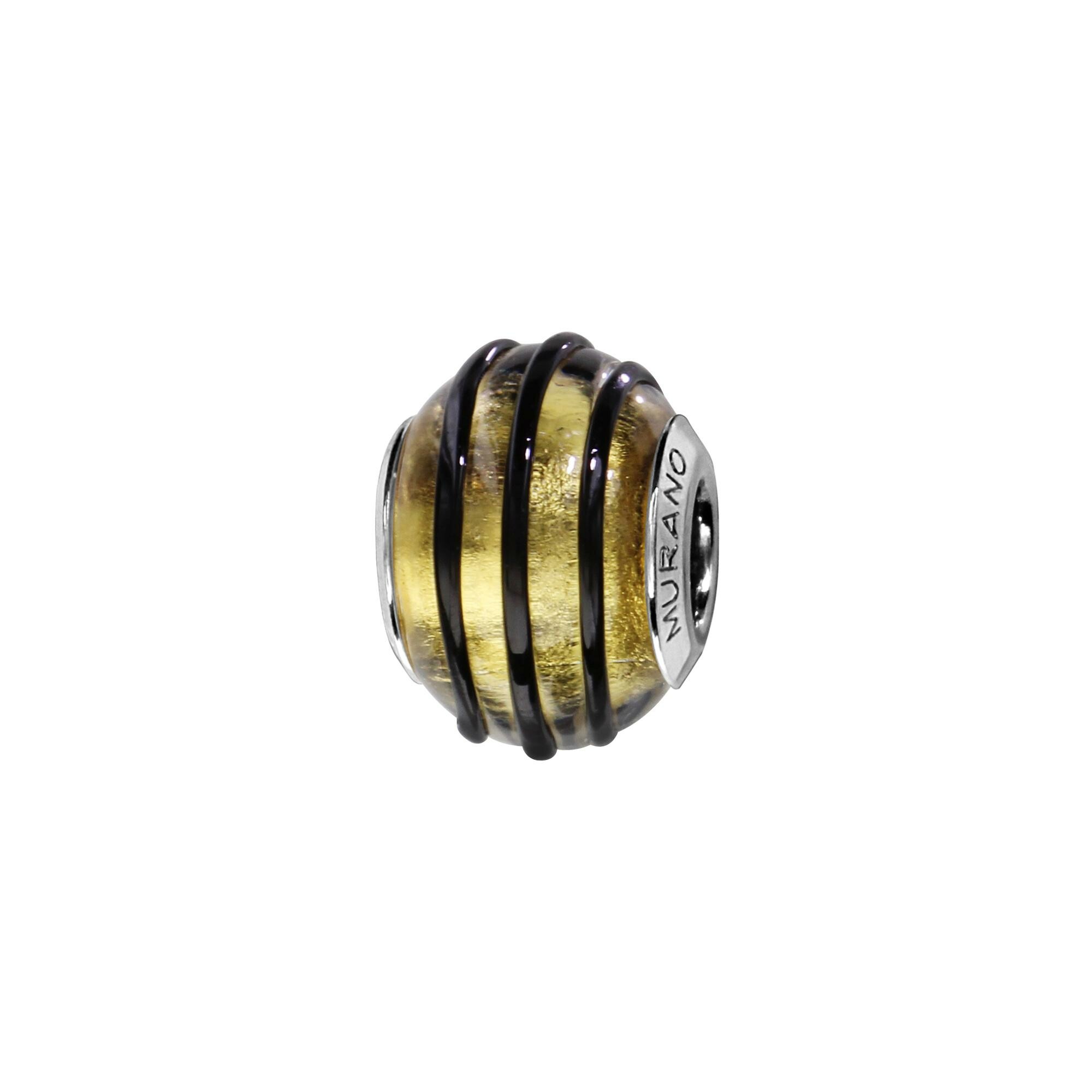 Charms coulissant argent rhodié murano zebres jaune et filet noir en relief