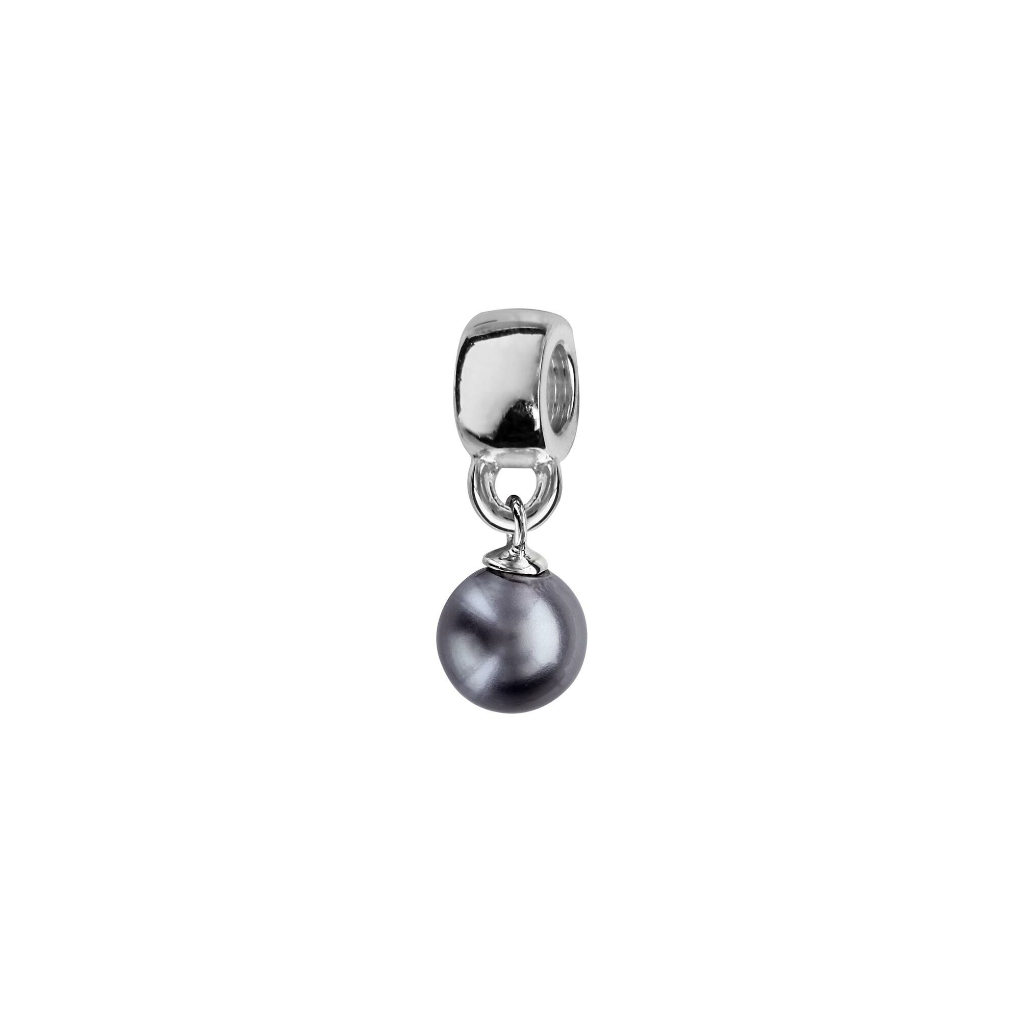 Charms coulissant argent rhodié suspendu perle grise synthétique 8mm