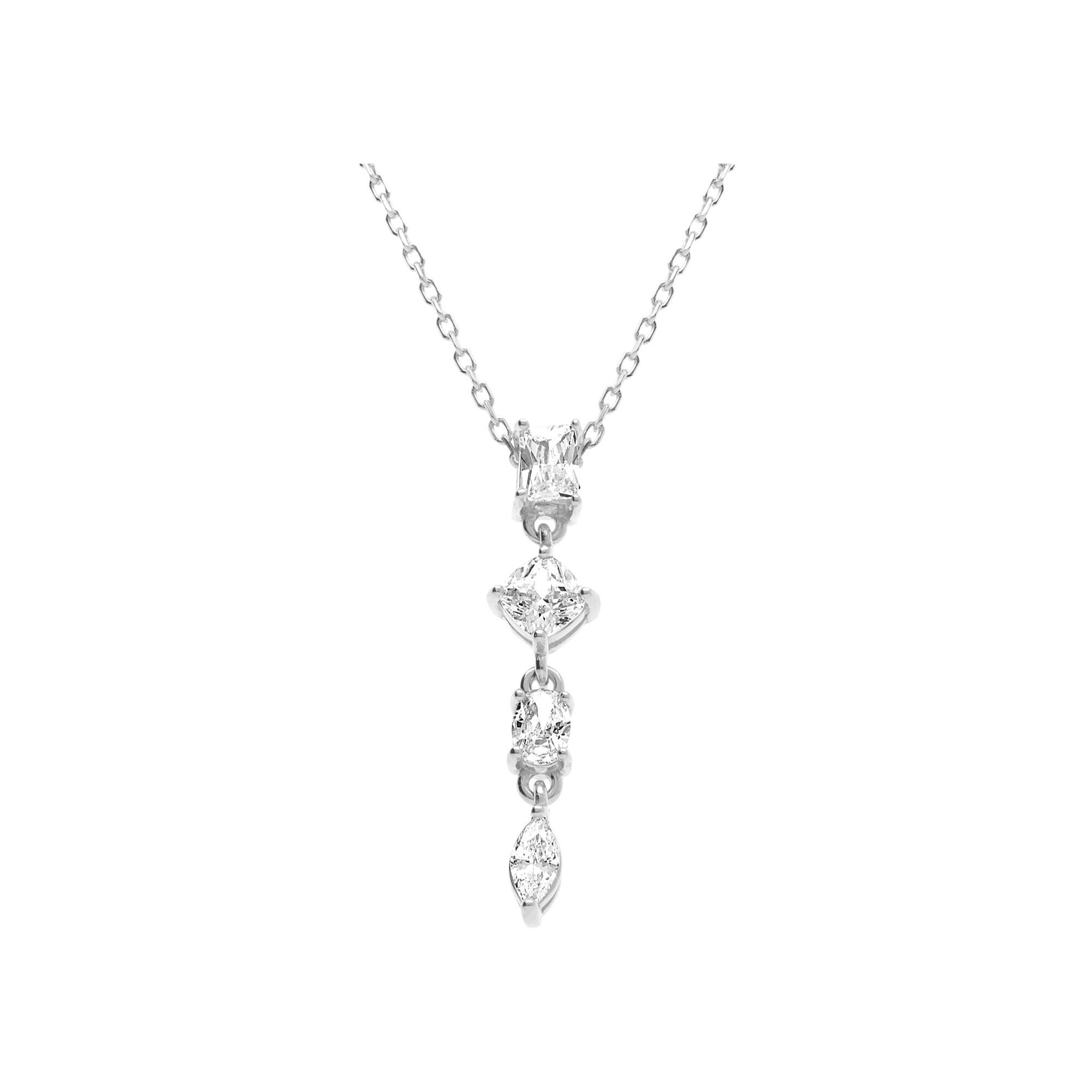 Collier argent rhodié pendant 4 oxydes blancs sertis 40+3cm