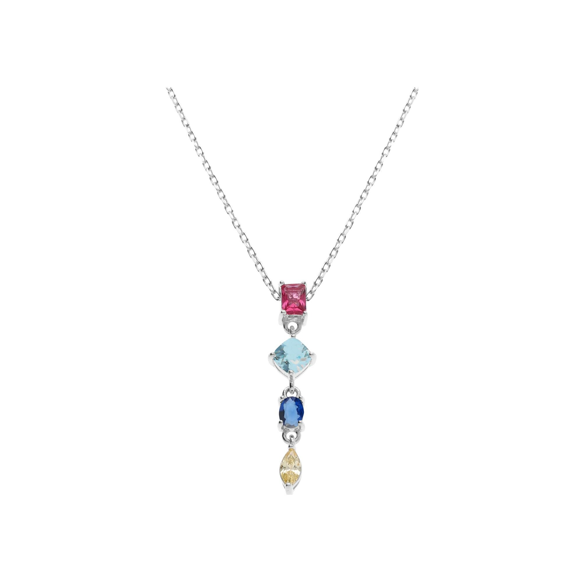 Collier argent rhodié pendant 4 oxydes multi couleurs 40+3cm