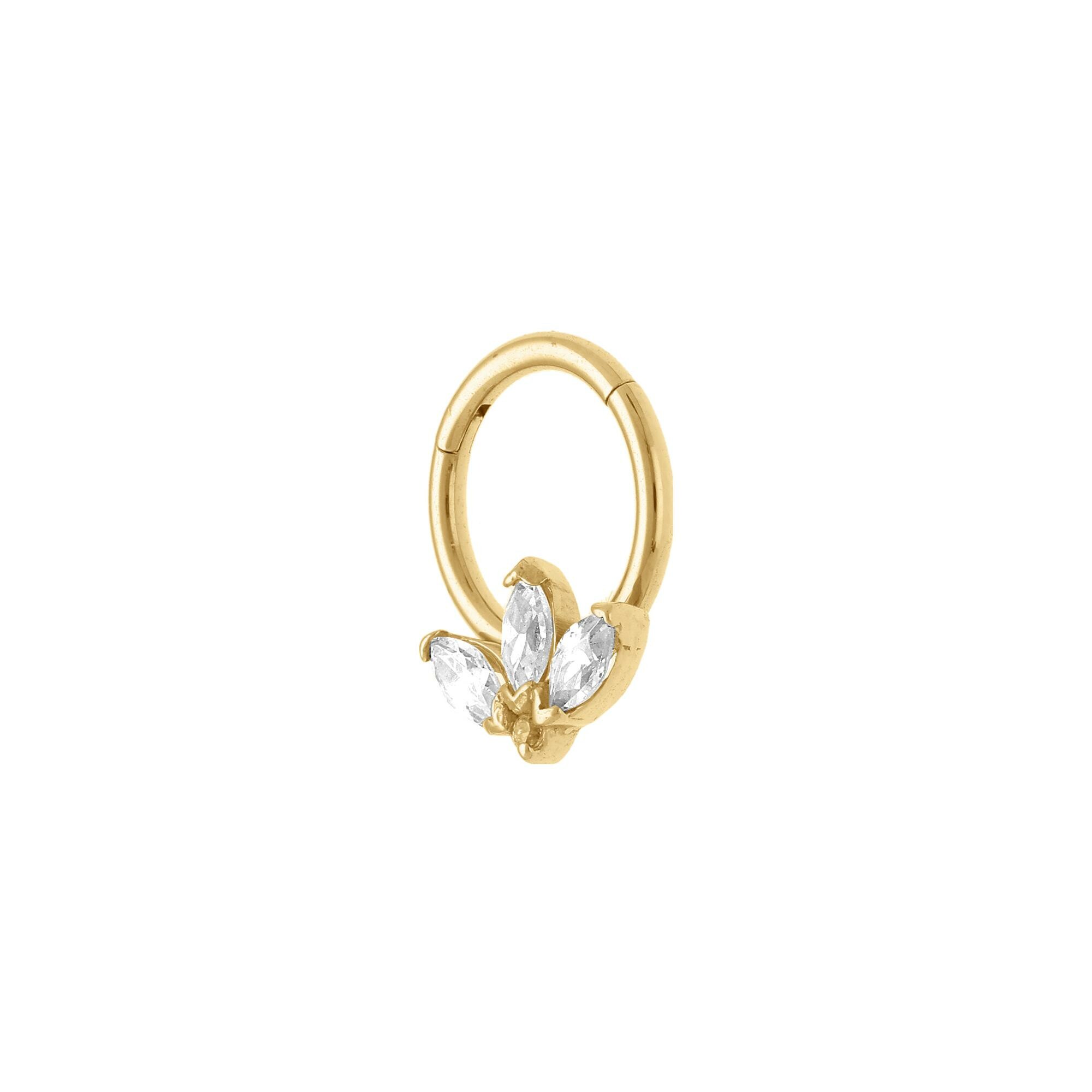 Piercing acier doré oreille helix, tragus, daith, anneau oxydes blancs