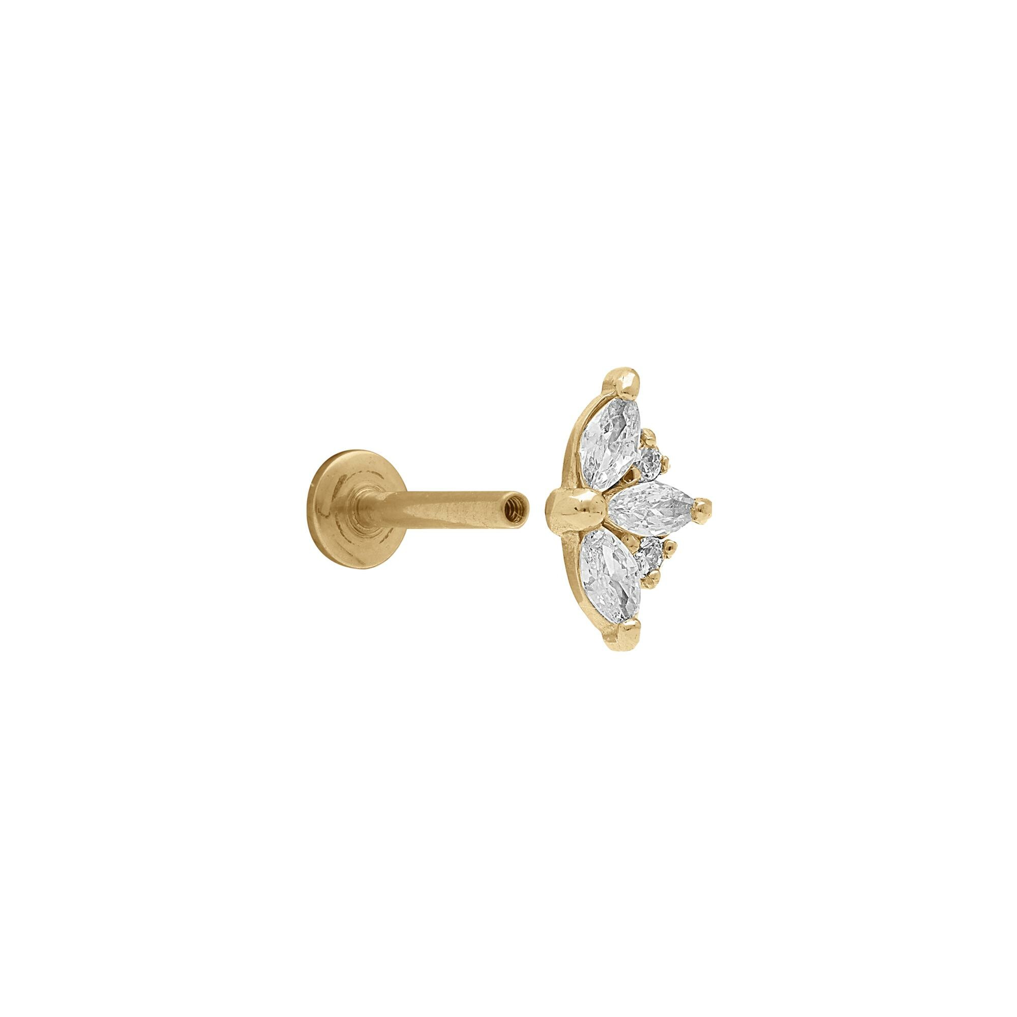 Piercing acier doré oreille helix, tragus oxydes blancs